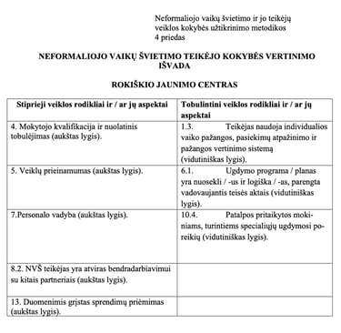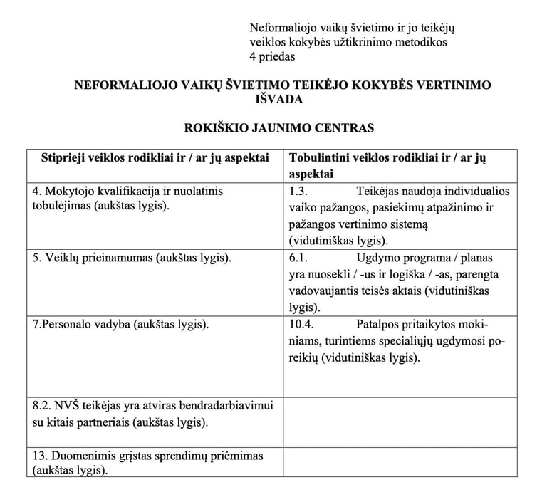 Lapkričio paskutinę savaitę Rokiškio Jaunimo centre vyko išorinis neformaliojo vaikų švietimo veiklos vertinimas. Vertintojai analizavo mūsų veiklos kokybę, programų įgyvendinimą, aplinką, bendradarbiavimą ir kitus svarbius veiklos aspektus. Gavome oficialias išvadas, kuriomis norime pasidalinti.