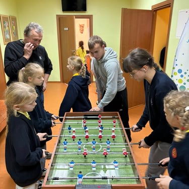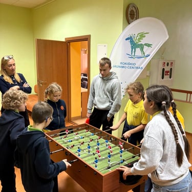 Kitokie užsiėmimai subūrė net 16 „Dailės pažinimas“, „Robotika“ ir „Pinti stebuklai“ mokinių, kurie, pasiskirstę komandomis, stojo į įnirtingą stalo futbolo turnyrą.