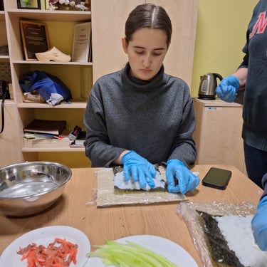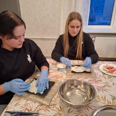 Virėm, kepėm, sukome… ir juokėmės tiek, kad net žandai skaudėjo. Skanūs sušiai + naujos patirtys = tobulas receptas smagiai popietei!
