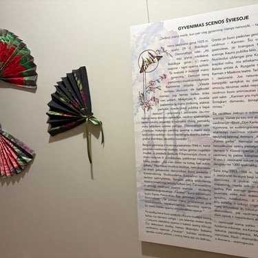 Rokiškio jaunimo centro mokytojų Žilvino Vaičiūno, Domingos Mikšėnaitės, Reginos Raišienės mokinių kurtos vėduoklės papuošė operos primadonos Irenos Jasiūnaitės 100-osioms metinėms skirtą parodą „Gyvenimas scenos šviesoje“.