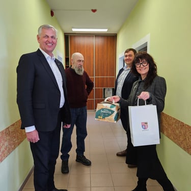 Už jaunųjų talentų darbais papuoštą savivaldybės pastato 3-iojo aukšto sieną I. Vagonei ir R. Gailiūnui padėkojo rajono meras Ramūnas Godeliauskas ir vicemeras Antanas Taparauskas, įteikdami padėką bei šakotį.