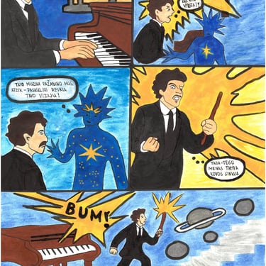 Sveikiname nugalėtojus ir dėkojame visiems dalyviams už išradingumą, pastangas ir gebėjimą pažvelgti į M.K. Čiurlionio kūrybos pasaulį per komikso prizmę.