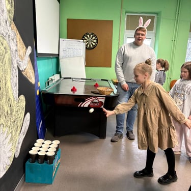 Kovo 25 dieną mokiniai, vaikai, jaunuoliai, mamytės, tėveliai ir seneliai kartu „rideno pavasarį“. Kūrybinėse dirbtuvėse netrūko veiklų: „Zuikio portretas“, „Margučių dėkliukai“, „Margi žaidimai“, „Velykiniai atvirukai“, „Pavasario kompozicijos“, „Margučių dirbtuvės“. Vieni pasinėrė į kūrybą ir gamino Velykines dekoracijas, kiti smagiai leido laiką žaisdami ir bendraudami.
