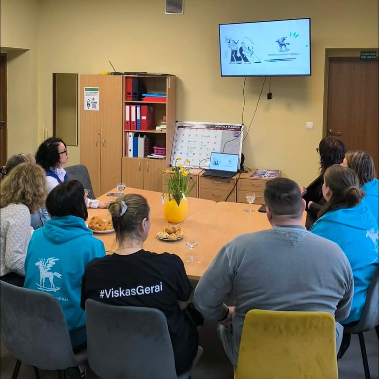 Kovo 31 dieną jaunimo darbuotojai bei administracija susitiko su Visuomenės sveikatos biuro direktore Jolita Žaliauskiene ir specialiste Justina Šiupiniene. Susitikimo metu apsikeista informacija apie jaunimui teikiamas paslaugas, aptarėme aktualiausius iššūkius bei galimas bendradarbiavimo kryptis.
