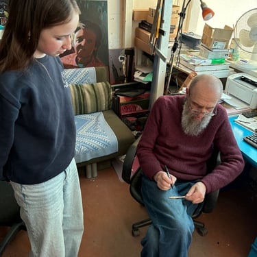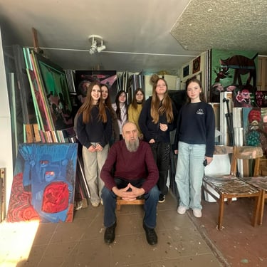 Balandžio 15 dieną 2 klasės mokiniai lankėsi dailininko ir mokytojo Raimondo Gailiūno dirbtuvėse, kur menas atsivėrė visai kitaip – per gyvą pokalbį, klausimus ir tikrus kūrybos įrankius.