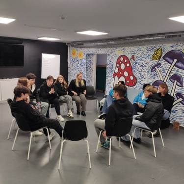 Kelionės metu ieškojome panašumų ir skirtumų tarp centrų, kalbėjomės apie tai, kas įkvepia, motyvuoja ir padeda kurti patrauklias erdves, veiklas jaunimui.